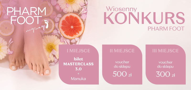 Napisz w komentarzu na Instagramie marki PHARM FOOT, pod postem konkursowym – swoje wiosenne hasło związane z pielęgnacją stóp i marką PHARM FOOT.