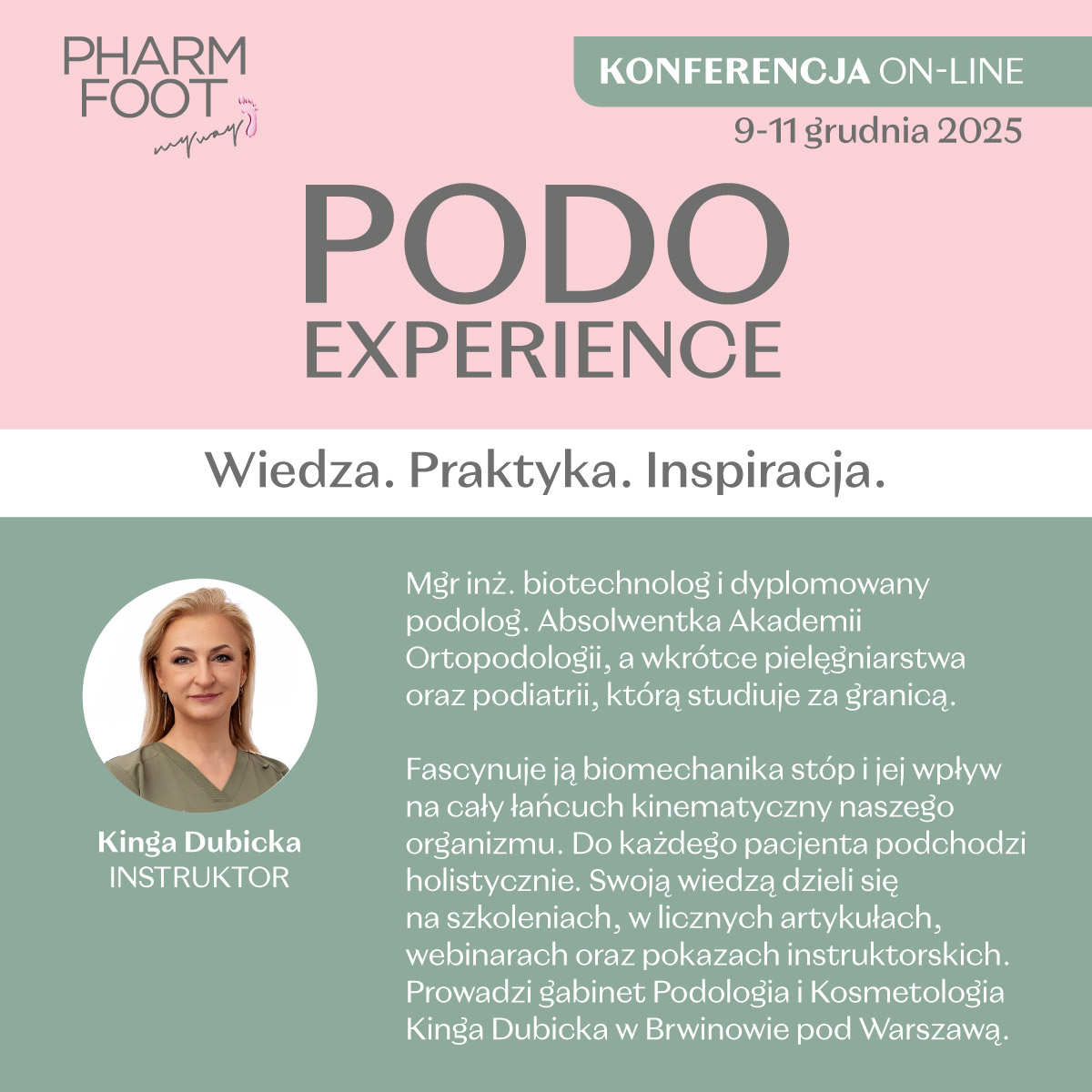 Prowadząca: Kinga Dubicka, Instructor PHARM FOOT